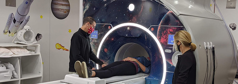 Creating an "out-of-this-world" MRI machine: As part of her research examining the brain development of children battling cancer, Ellen van der Plas, assistant professor in the University of Iowa Department of Psychiatry, worked with an Iowa City company to wrap MRI machine in vinyl to make it more kid-friendly.